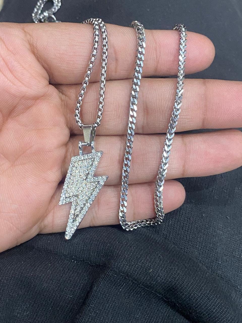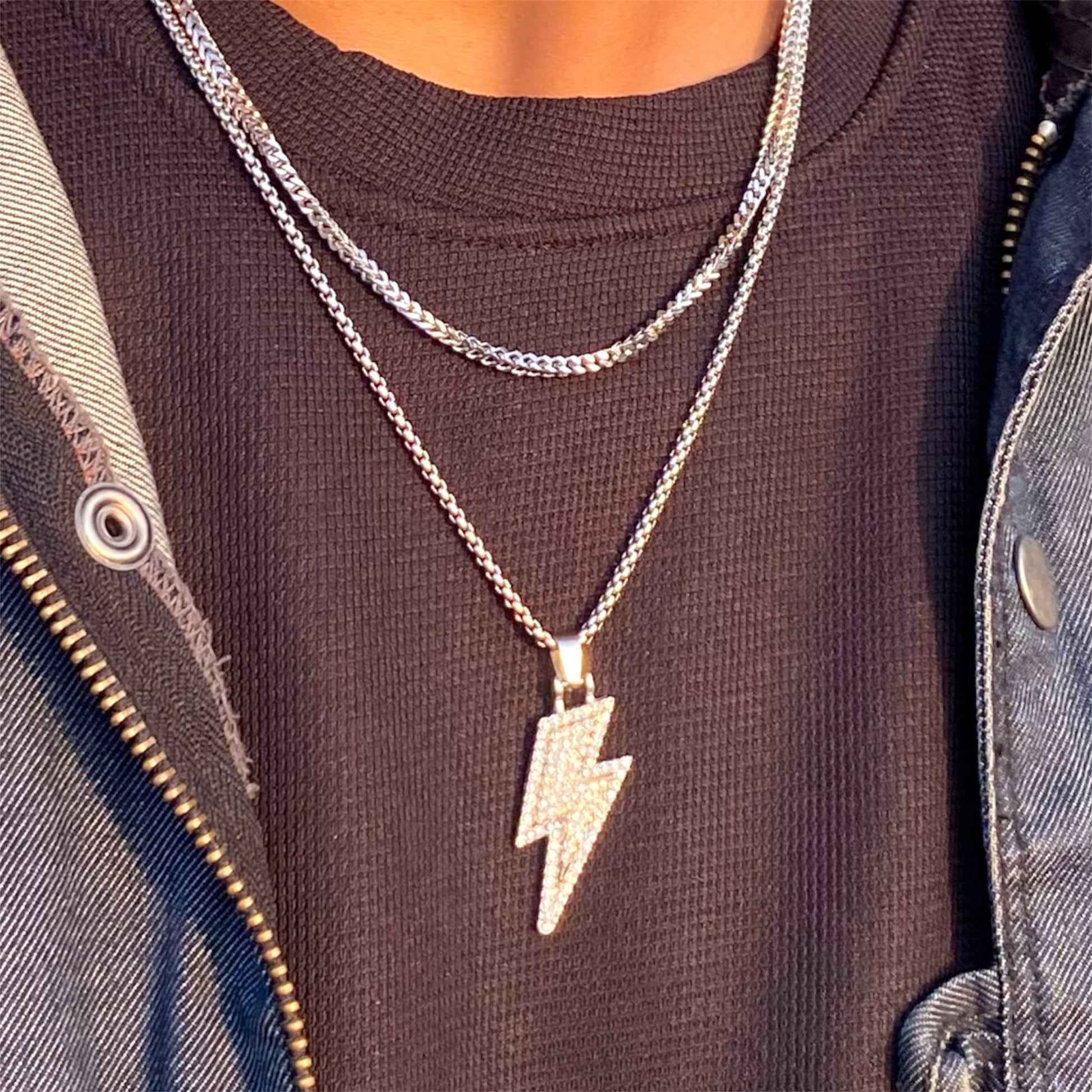 Foxtail Chain × Lightning Pendant Set – Premium Silver